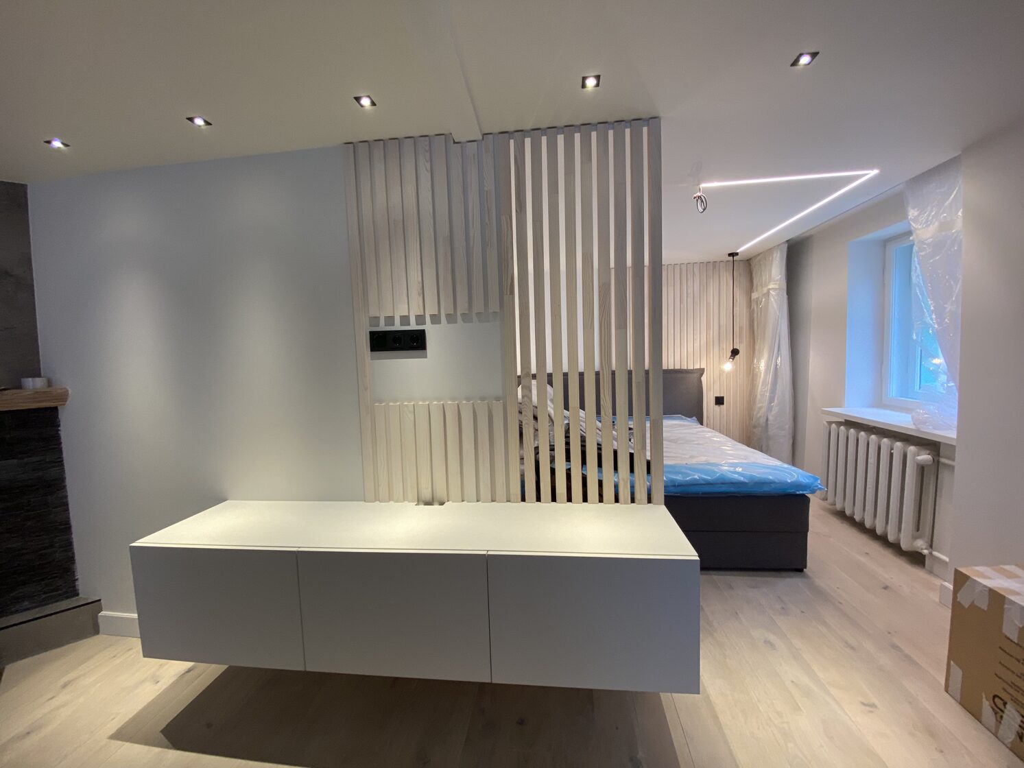 Apskatiet mūsu pabeigtos projektus! Mēs specializējamies mēbeļu detaļu, reklāmas objektu un nestandarta koka virsmu krāsošanā, beicēšanā un lakošanā.